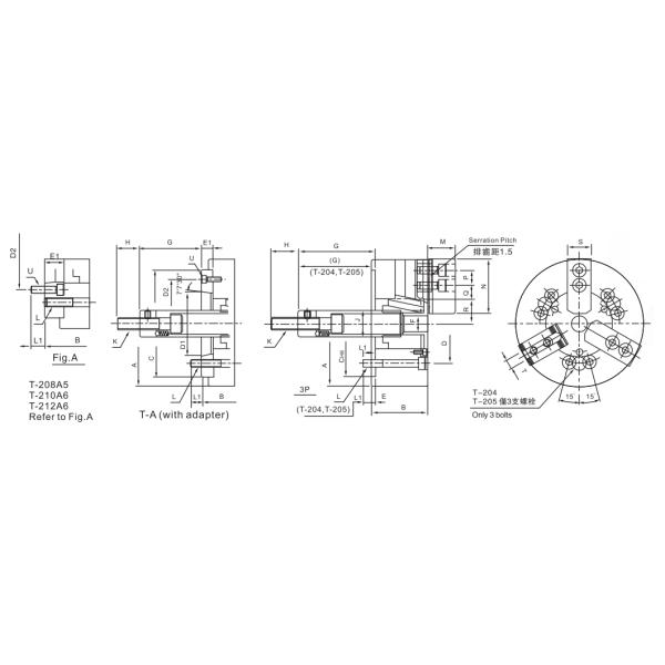 Model Number : T-204,T-205 A4,T-206 A5,T-208 A5,T-208 A6,T-210 A6,T-210 A8,T-212 A8,T-215 A11,